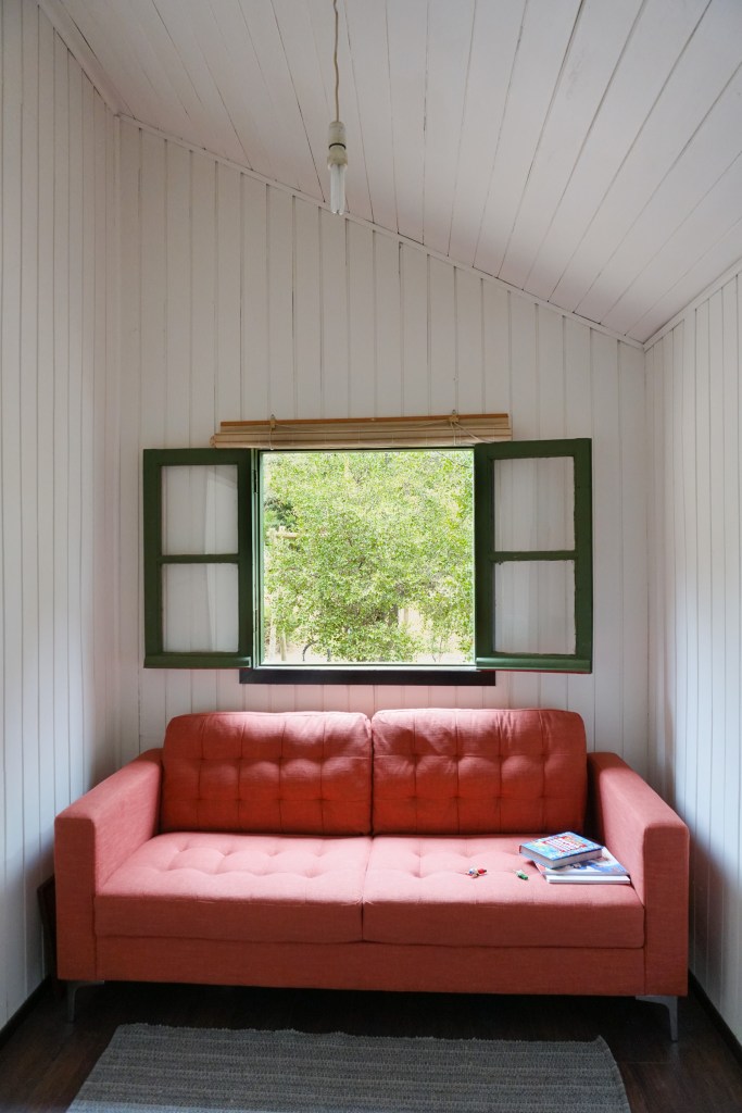 I hesitate to call this a living room. It’s more like a living nook. This little area is located between the kitchen and the bedrooms and was previously an under-used space, mostly due to the furnishings. But it wasn’t hard to imagine how lovely and cozy this nook could be. Other than closing off the wall between this room and the master bedroom, not much needed to be done here.